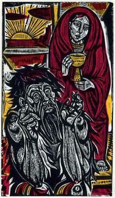 To be honest, I don’t find the plot all that interesting from here on out, but I think there are a few aspects worth considering: His interaction with Siduri the tavern keeper, the journey across the waters of death, and the message that turns Gilgamesh away from his wanderings and leads him home. Despite the fact that he has wandered over desolate mountain passes and through a deep dark tunnel and landed on the far edge of the world, he isn’t alone. There’s a seaside inn. The text doesn’t give any clues as to whether this is a charming bed and breakfast type establishment or a seedy bar/ roach motel situation, but it is convenient. Siduri, the innkeeper, sees him coming, and notices that Gilgamesh cuts an impressive figure.