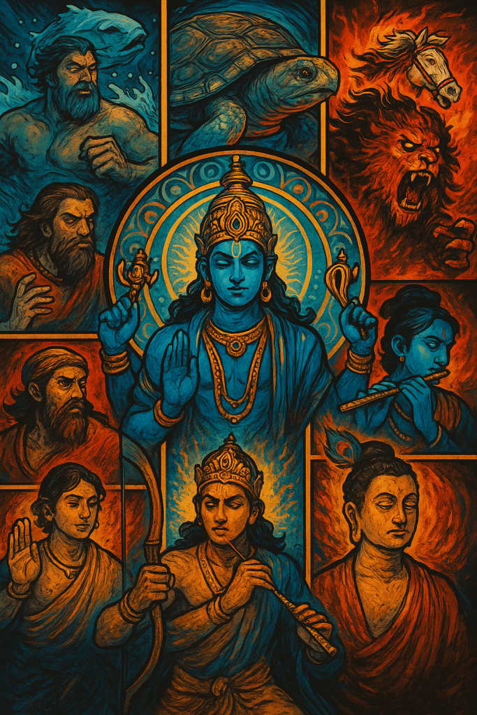 Of course his immunity against the gods does not render him invincible. He can be defeated by an animal or a human. But why would anyone worry about weak, puny humans? Of course we know one underestimates the capacity of mortals at one’s peril, just ask Sauron. Vishnu, god of preservation, offers to take on human form and restore the natural order of things. To recap: a malign force is causing chaos and suffering down of Earth, so a god is born as a human to restore peace and divine order. Where have I heard that before?