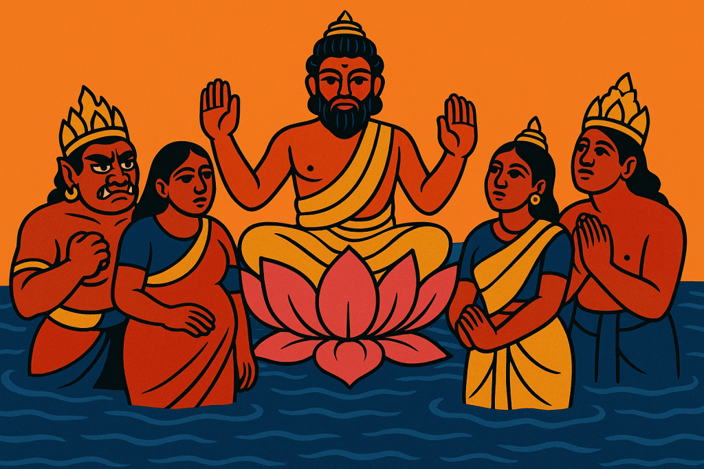 The universe is out of order when the Ramayana opens. Humanity is only dimly aware of the extent and underlying causes for the disorder, but we soon learn the problems have their roots way back in the creation of this version of the cosmos and the gods are powerless to repair things. The story goes that when Brahma awoke from his slumber and decided to recreate the universe he first separated the waters (sound familiar?), and fearing that something would disrupt the creation process, crafted beings to watch over and protect his project in beginning stage.